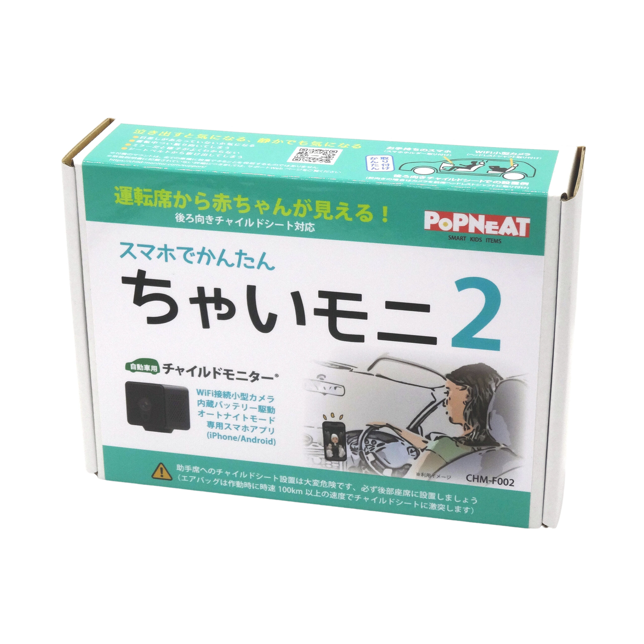 「ちゃいモニ2」は完全ワイヤレスの車載ベビーモニターで、チャイルドシートの赤ちゃんやジュニアシートの子どもの様子を振り返らずに確認することができます。